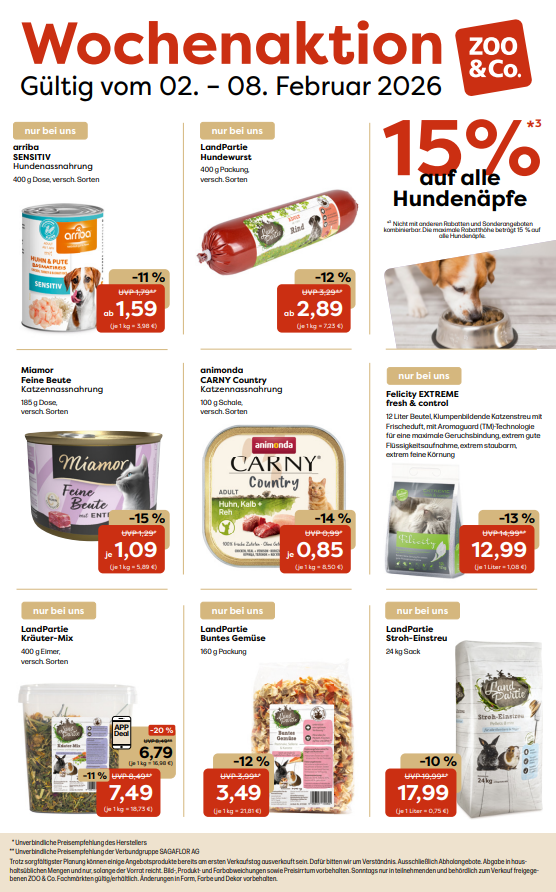 Trotz sorgfältigster Planung können einige Angebotsprodukte bereits am ersten Verkaufstag ausverkauft sein. Dafür bitten wir um Verständnis. Ausschließlich Abholangebote. Abgabe in haushaltsüblichen Mengen und nur, solange der Vorrat reicht. Bild-, Produkt- und Farbabweichungen sowie Preisirrtum vorbehalten. Sonntags nur in teilnehmenden und behördlich zum Verkauf freigegebenen ZOO & Co. Fachmärkten gültig/erhältlich. Änderungen in Form, Farbe und Dekor vorbehalten.